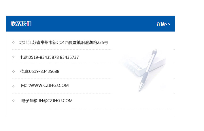 傳真:0519-83435688    郵編:213135    網(wǎng)址:WWW.czjhgj_com.khuishou.com    電子郵箱:JH@czjhgj_com.khuishou.com